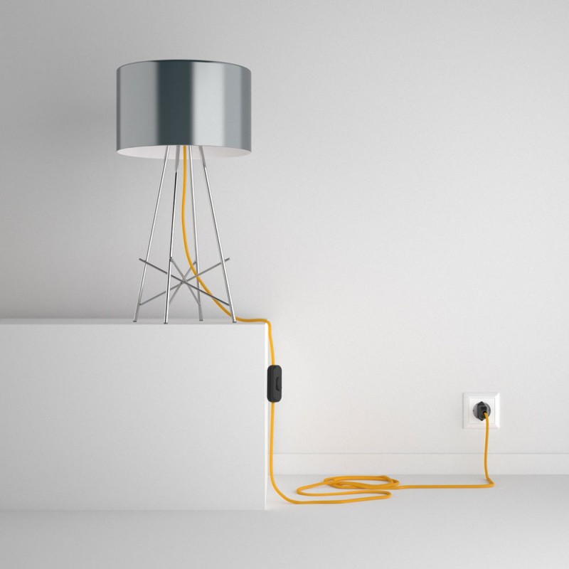 SnakeBis cableado con portalámpara cable textil Amarillo en tejido Efecto Seda RM10