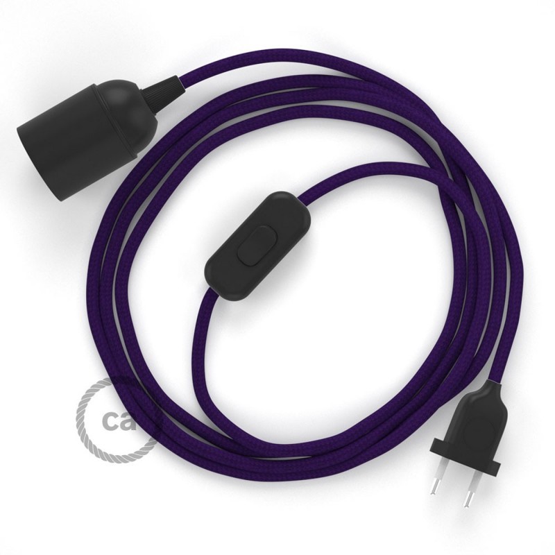 SnakeBis cableado con portalámpara cable textil Púrpura en tejido Efecto Seda RM14