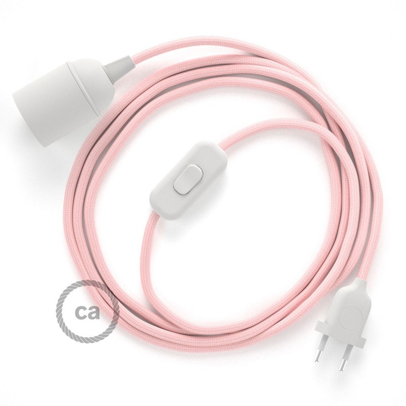 SnakeBis cableado con portalámpara cable textil Rosa Baby en tejido Efecto Seda RM16