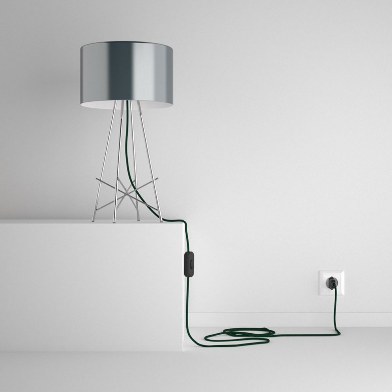 SnakeBis cableado con portalámpara cable textil Verde Oscuro en tejido Efecto Seda RM21