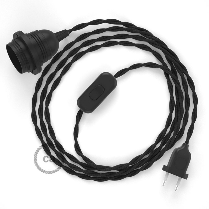 SnakeBis cableado con portalámpara cable textil Negro en tejido Efecto Seda TM04