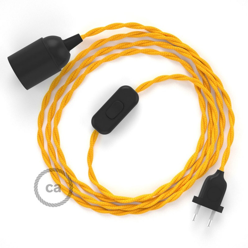 SnakeBis cableado con portalámpara cable textil Amarillo en tejido Efecto Seda TM10