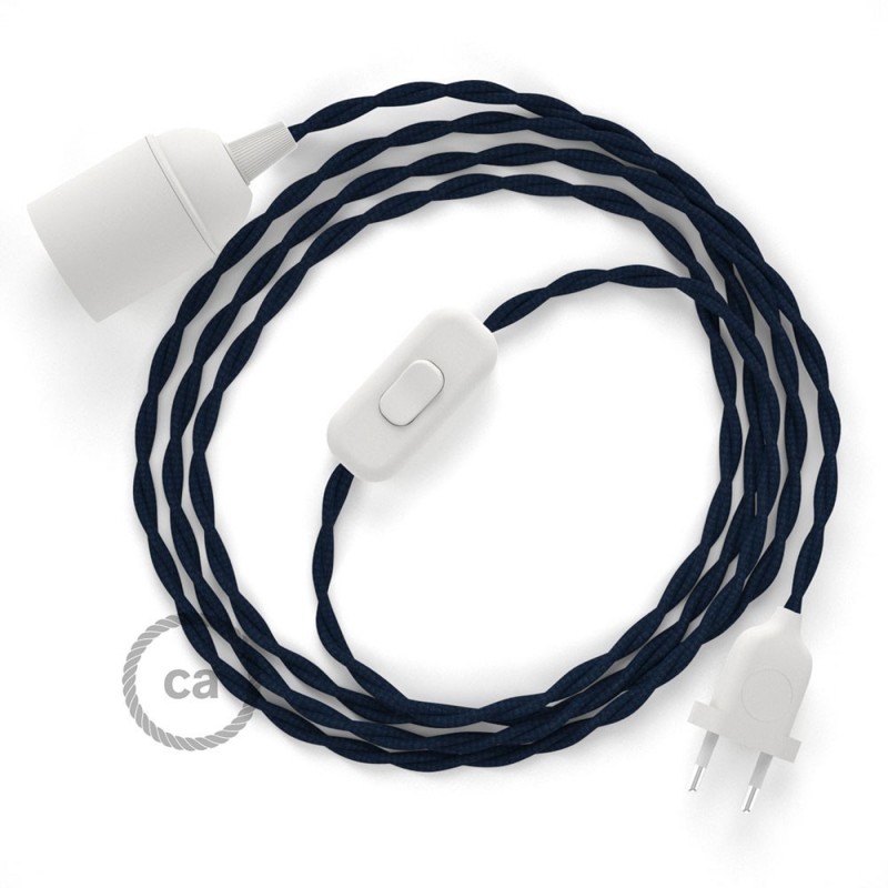 SnakeBis cableado con portalámpara cable textil Azul Marino en tejido Efecto Seda TM20