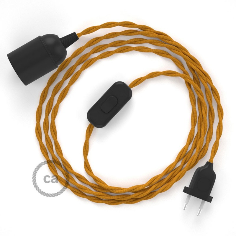 SnakeBis cableado con portalámpara cable textil Mostaza en tejido Efecto Seda TM25