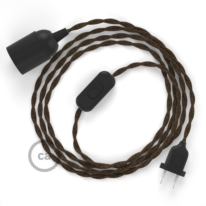 SnakeBis cableado con portalámpara cable textil Marrón en Lino Natural TN04