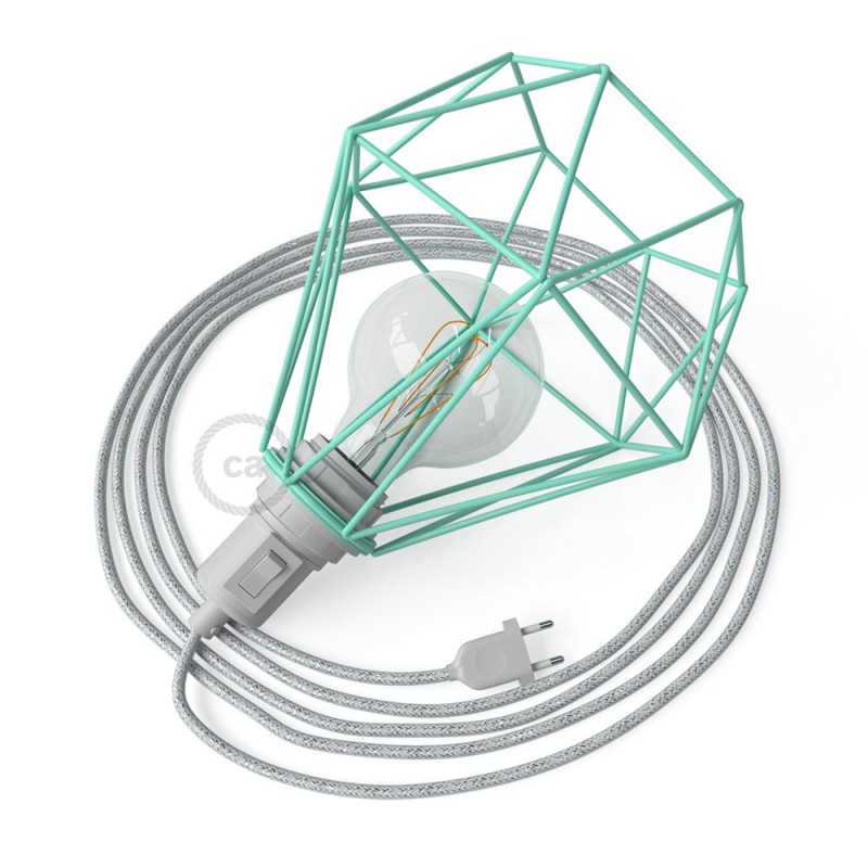 Con la pantalla jaula Diamond en metal turquesa, la lampara Table Snake de Creative-Cables está lista para convertirse en una encantadora lámpara de mesilla de noche, lista para usar al momento: solo tiene que conectar la clavija al enchufe y elegir en que superficie desea apoyarla!