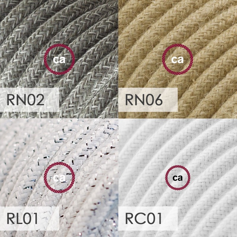 Elije entre los cuatro modelos de cable textil que hemos seleccionado, o solicitanos tu cable preferido para obtener una lámpara exclusiva hecha a medida.